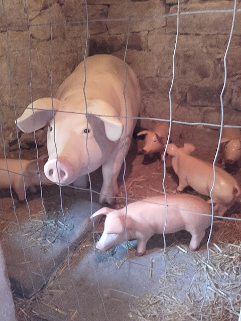 | Im Maison Rurale de l'Outre-Forets gibt es auch einen eingerichteten Schweinestall wie früher. Essbar sind die Tiere nicht. |